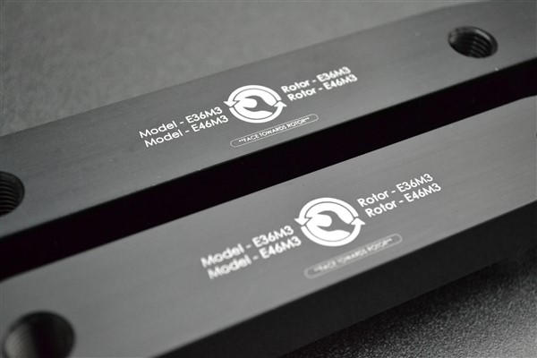 Reboot Engineering’s Brembo Caliper Brackets support installation of BMW 135i front calipers on E36 M3 Models, allowing for the use of larger brake pads and increased braking performance.