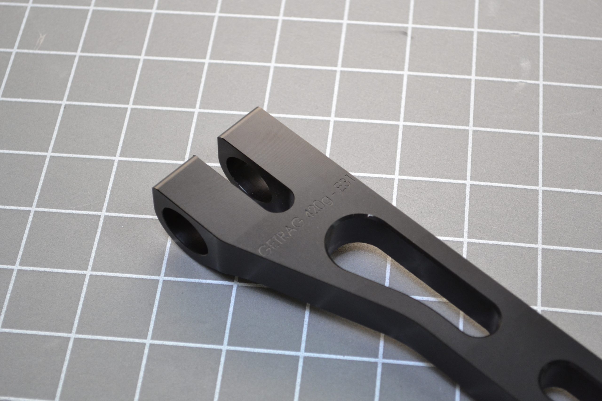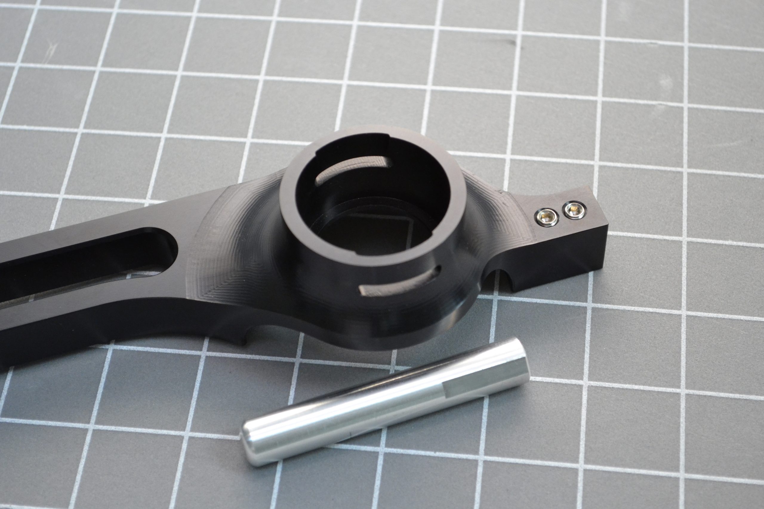 This part is used when converting an E31 to a 6 speed when using a Getrag420g transmission. The part is necessary for the conversion to ensure that the shifter correctly aligns with the hole in the transmission tunnel. The machined components are constructed of 6061 Aluminum.